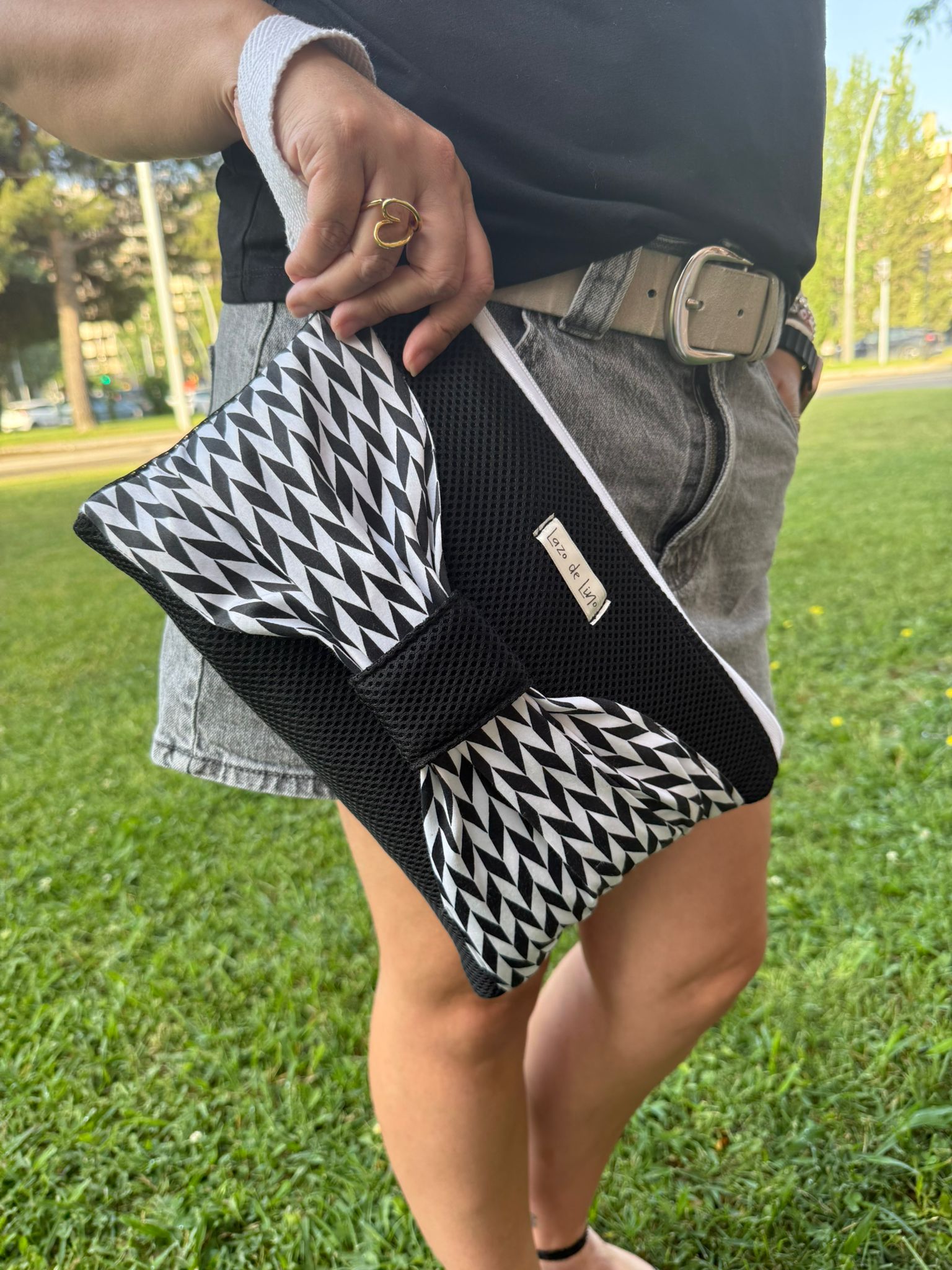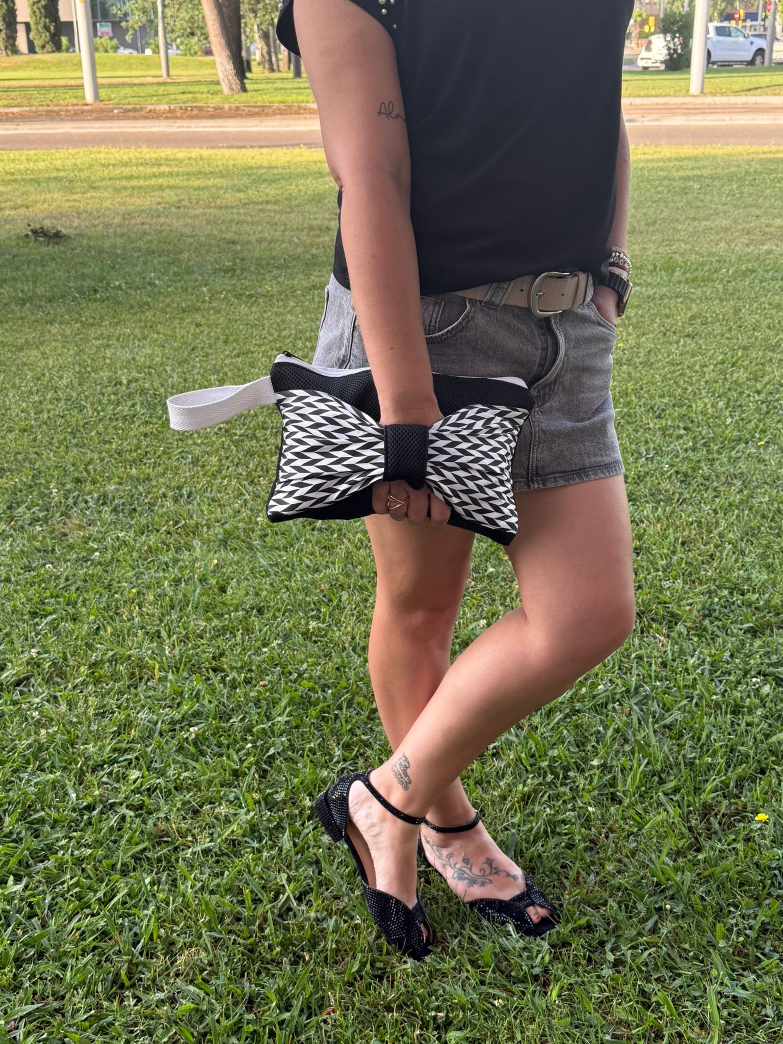 Con opción de llevarlo con el asa, o de meterte la mano por el lazo y hacerlo todavía más elegante.